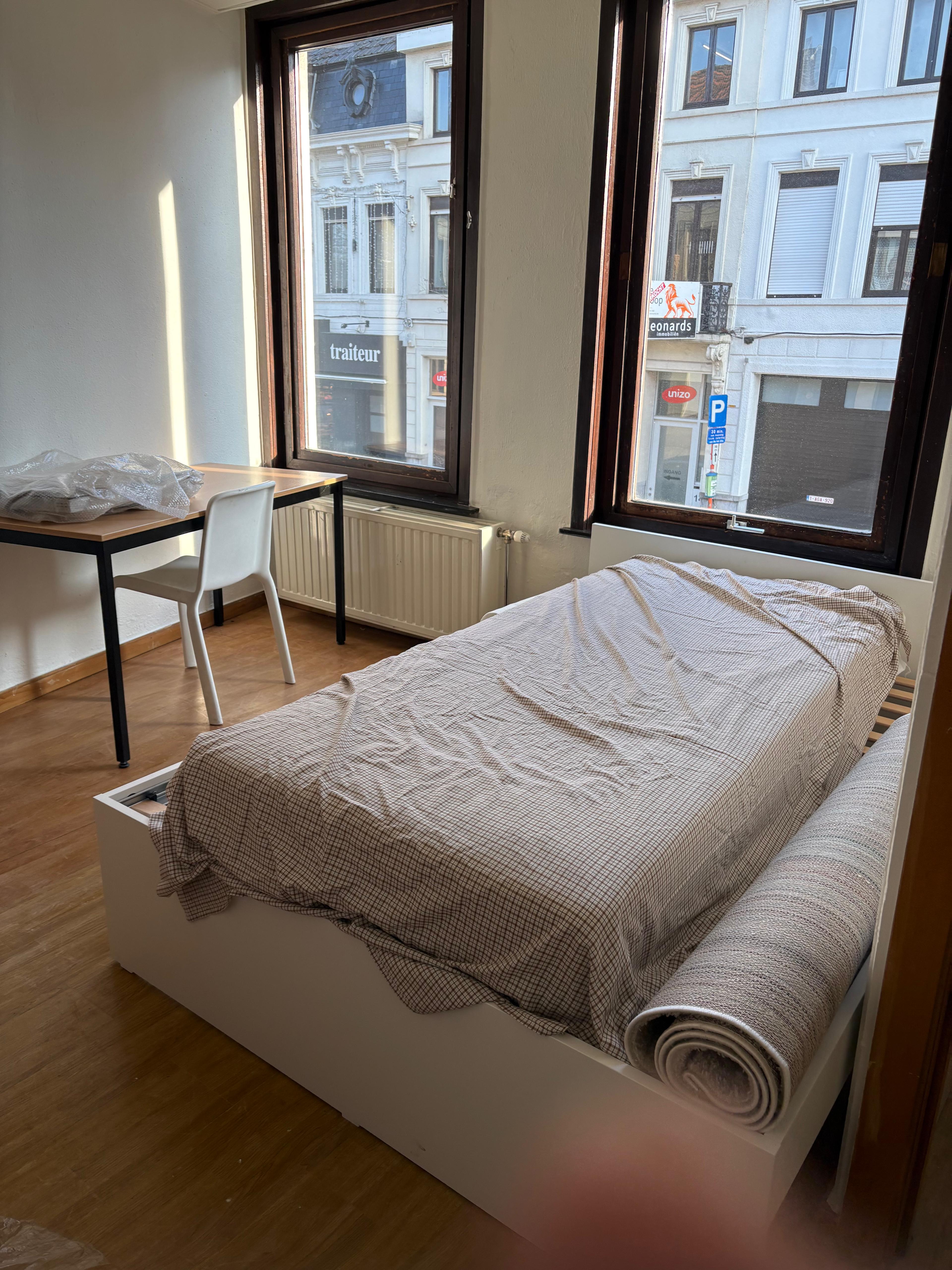 Het kot bevindt zich op een bruisende locatie, met supermarkten, verswinkels, restaurants, bars op 5min stappen.